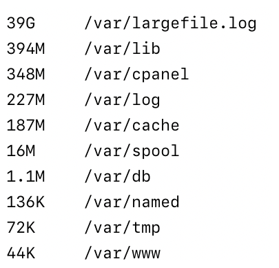 As you can see, the /var directory consumes 40 GB, dwarfing the amount of data in the other directories. So, we run du again on /var.