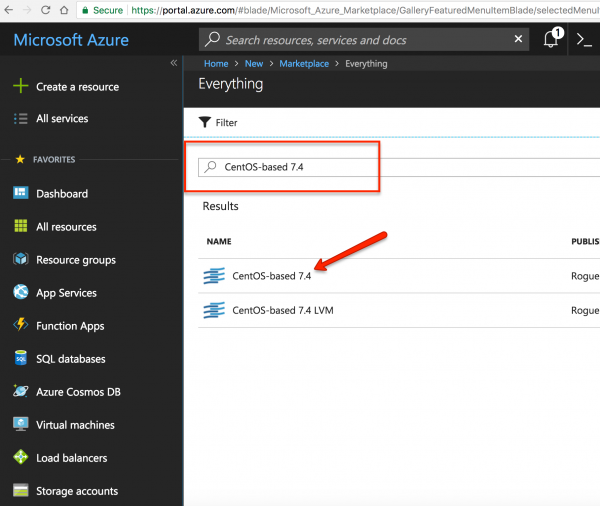 After doing so, a new box will display with suggestions as to machines and images of machines to deploy. We are going to use the top search box to search for “CentOS 7.” Please refer to the screenshots for additional guidance.