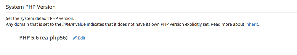 Changing the system’s default PHP version will also change any primary domain set to Inherit.